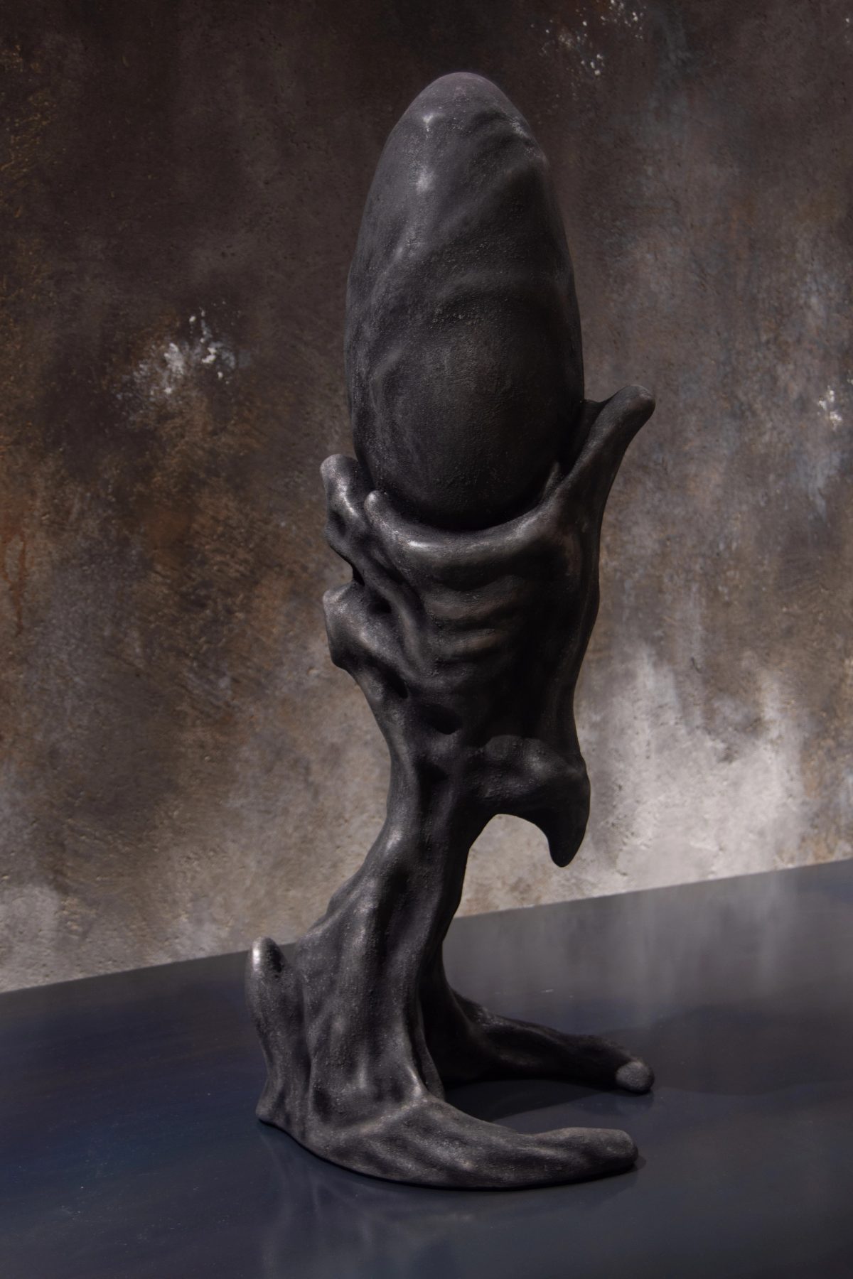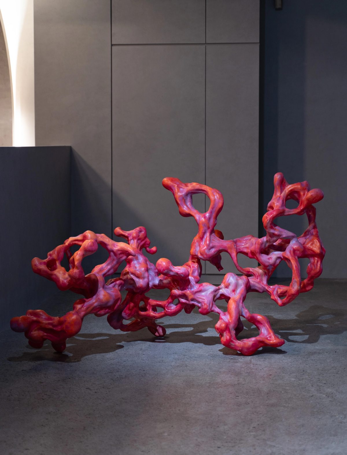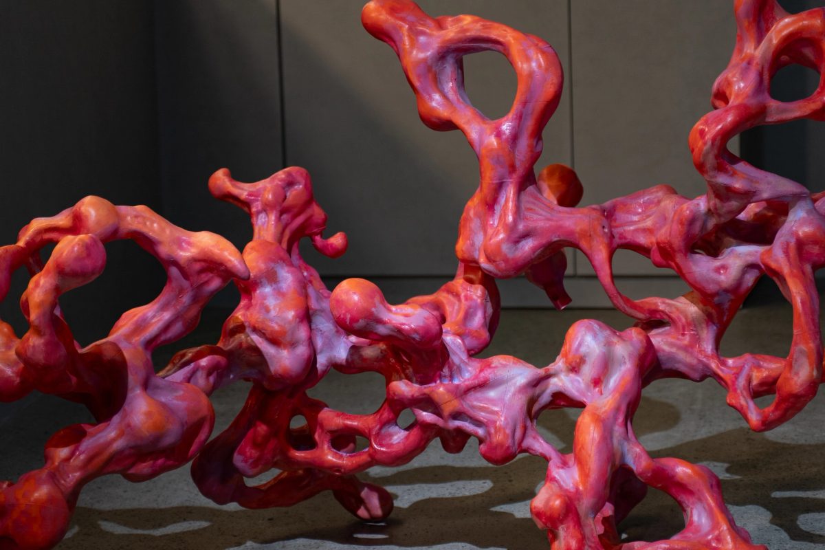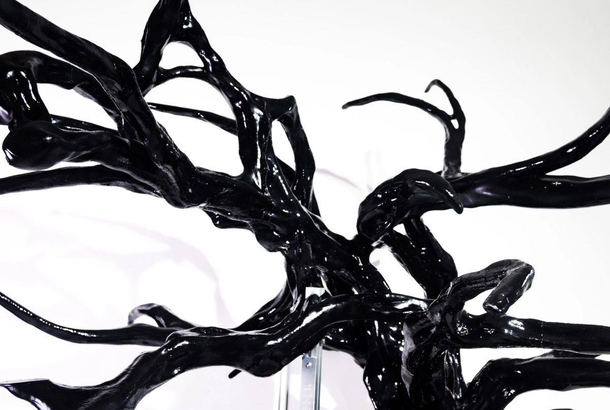 Many of your pieces feel like organisms caught between growth and decay, steel and skin. How do you think about material life, especially when you work with resin, chrome, and code?