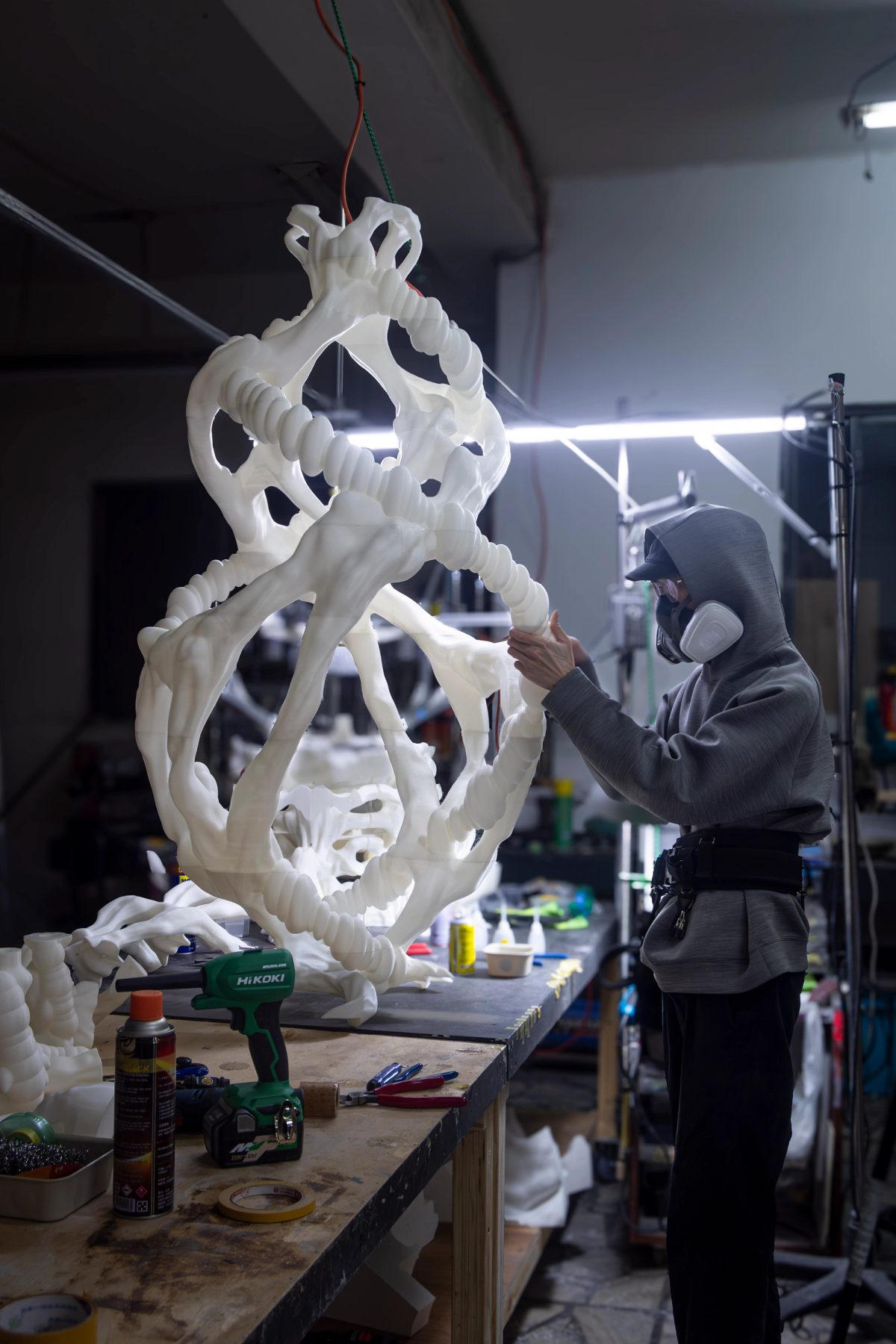 My studio is also producing some commissioned projects, including a large scale installation for a new music venue and a wearable sculpture for an influencer. These projects continue my exploration of Qi in different forms and flows.