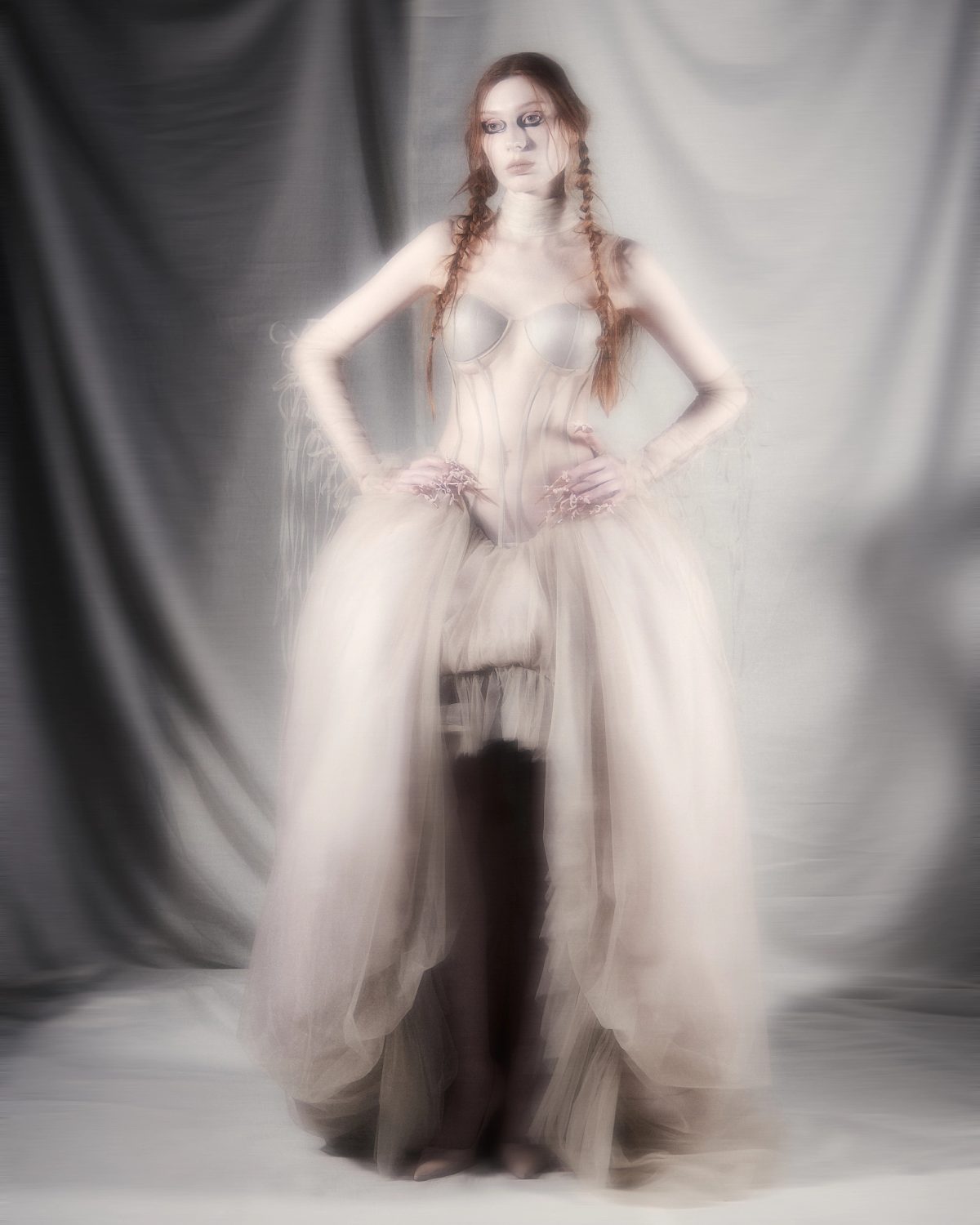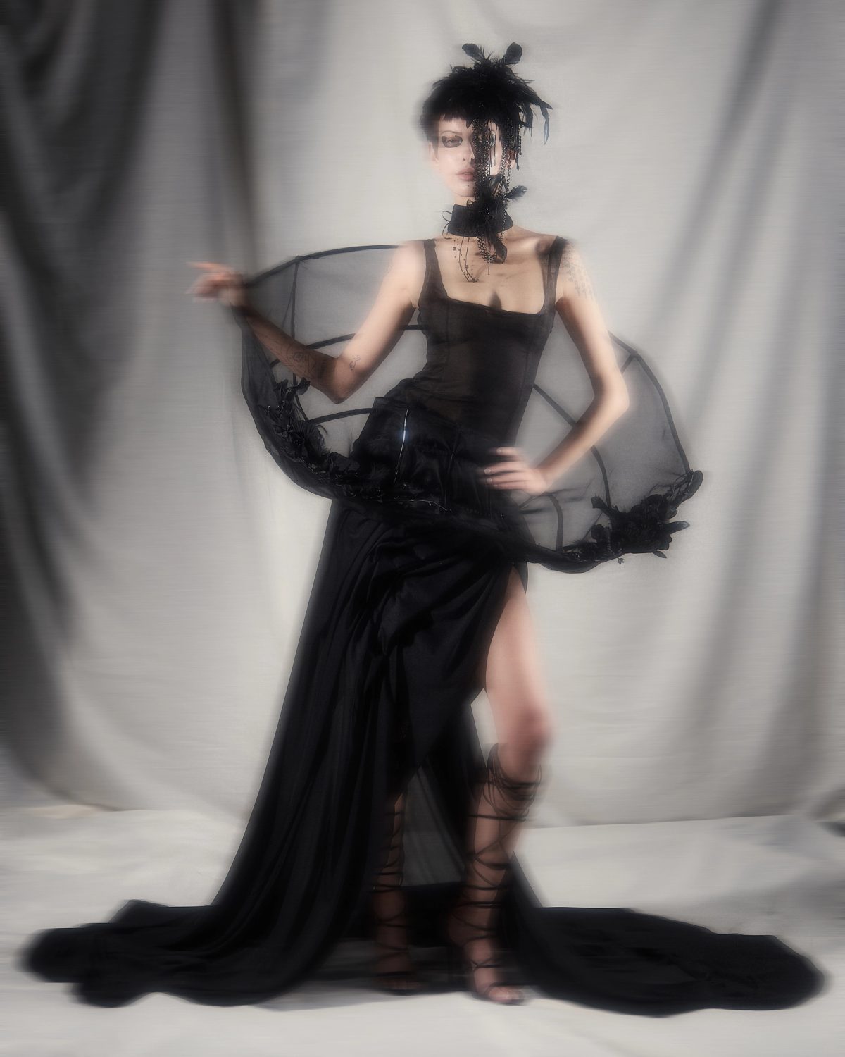 We had the opportunity to witness your most recent runway collection. A procession of spectral silhouettes, each figure moving like a vision summoned from another realm. Every element (garment, hair, nails, gesture) seemed meticulously executed, imbued with a sense of ritual. Could you speak to what you were conjuring with that body of work? What myths, obsessions, or emotional undercurrents were carried through its creation?